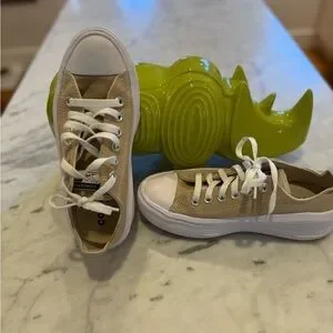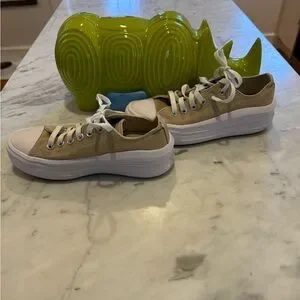 Converse All Stars platforms in nutty oatmeal/beige/tan.
