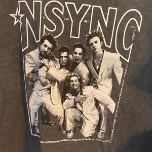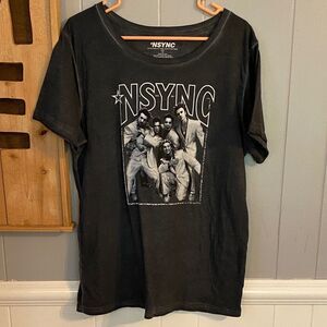 Black/grey washed NSYNC graphic t-shirt with a bold design.