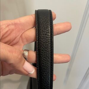 Elegant black leather crossbody bag with tassel detail. Perfect for any occasion.