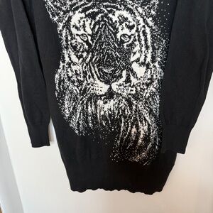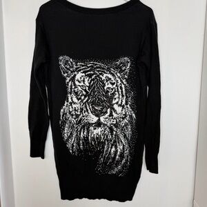 ZARA Longline Bold Edgy Tiger Design Sweater Dress Black/White Graphic Size L