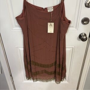 Never used and brand new flapper style dress in color mauve/clay (a darker pinkish color) in a size XL. It also has adjustable straps.
