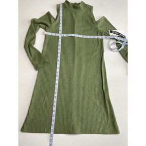 DESIGN LAB Solid Olive Green Cold Shoulder Ribbed Dress Sz Small NEW