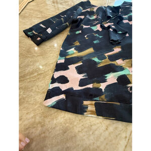 TULLE ANTHROPOLOGIE MEDIUM RUFFLE ABSTRACT Brush stroke PRINT BLOUSE