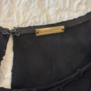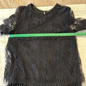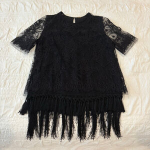 Adam Lippes Black Fringe Lace Short Sleeve Crew Neck Top, size 8 deco designer