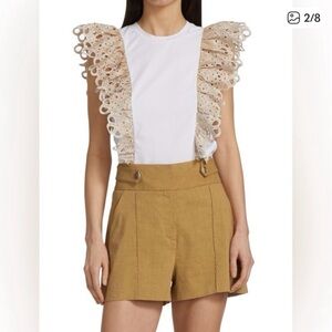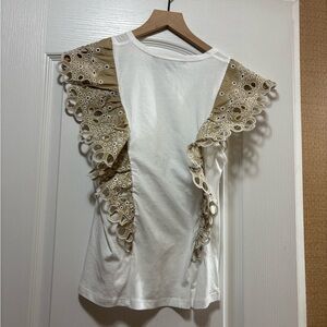 Veronica Beard White and Tan Lace Ruffle Blouse