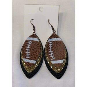 Earrings Football Game Glitter Dangle Drop Gold & Black Lightweight College Game