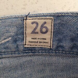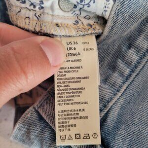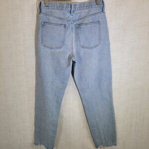 We The Free Jeans Women 26 Blue Tapered Button Fly Distressed Hi Rise Raw Hem