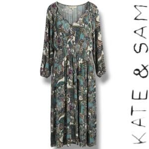 Tags: Kate & Sam dress, boho midi dress, paisley print dress, women’s XXL, rayon dress, long sleeve dress, fall boho style, casual midi