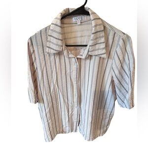 Excellent Condition!! TCEC Striped Beige and Black Button Down- Large