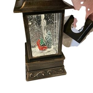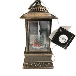 Bronze Lantern with Red Truck and tree Scene 10” tall