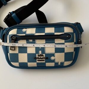 Chic Coach belt bag with teal and cream checkered design. Front zipper pocket and adjustable strap included. This bag is in amazing condition and was only carried a few times.