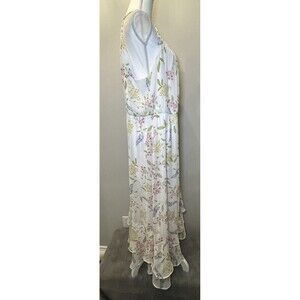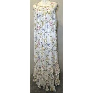 Calvin Klein Chiffon Print Mock Neck White Floral Maxi Dress Plus Size 18W