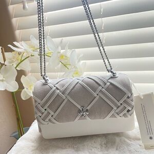 NWT Tory Burch Mini Kira Woven Canvas Flap Bag