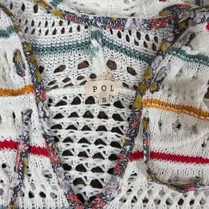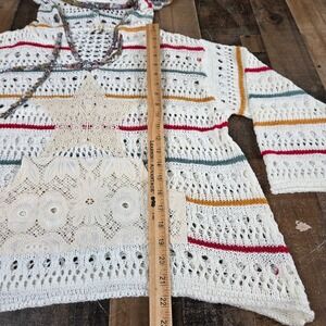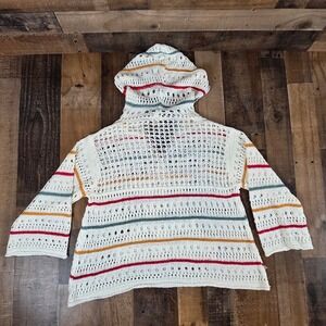 Anthropologie POL Crochet Knit Star Hoodie White Color Stripes Boho Hippie Small
