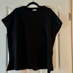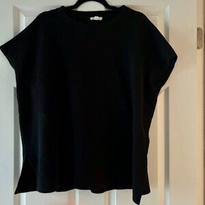 EILEEN FISHER Organic Cotton Crewneck Box Top Black Tee Size XL Cap Sleeve