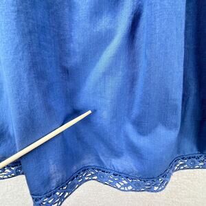 Abercrombie Fitch Babydoll Mini Dress M Blue Lace Trim Embroidered Buttons Lined