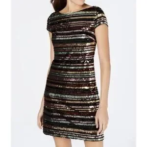 Vince Camuto Women's Sequin Colorful Party Cocktail Mini Dress Size 4 Festive