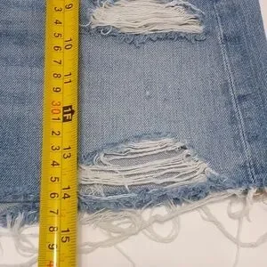 buttonfly for closure. distressed detail. high waisted. good quality.