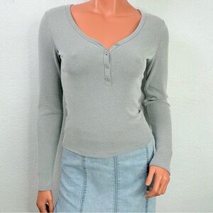 Y2K Hollister Women’s Henley Top S Gray Ribbed Knit Long Sleeve Scoop Neck Bella 90s Grunge Feminine Preppy
