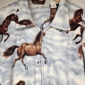 Beautiful Vintage 90s Horse Equestrian Fleece Jacket All Over Print Horses on the front, back, and Sleeves