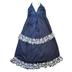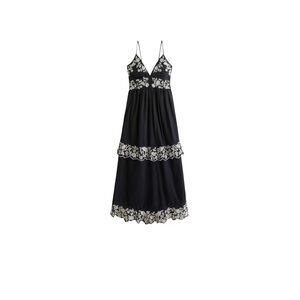 NWOT Abercrombie Dress Women's Large Black Tiered Ruffle Maxi Embroidered