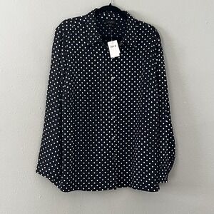 J.Jill Wearever Collection XL Navy Cream Polka Dot Button Front Blouse Long Sleeve