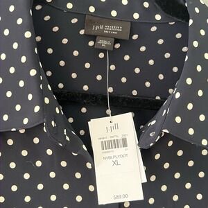NWT J.Jill Wearever Collection XL Navy Cream Polka Dot Button Blouse Business