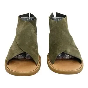 BORN Iwa Comfort Crisscross Flat Sandals Army Green Suede Size 10