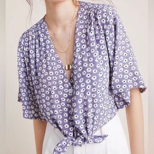 Faithfull the Brand x Anthropologie Danica Floral Tie Front Crop Top Size 2