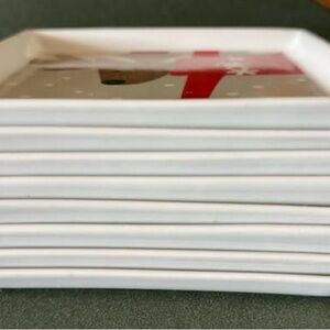 Christmas reindeer ceramic appetizer plates-set of 8; brand new, never used. From Crate and Barrel.