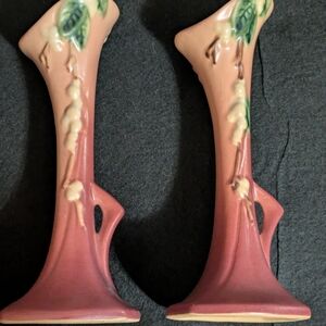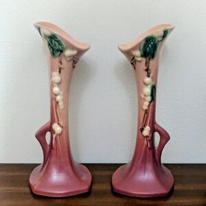 Vintage Original Roseville Pottery Snowberry Bud Vases.