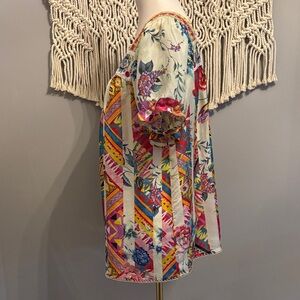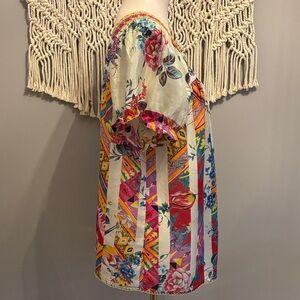 Johnny Was Multicolor Floral and Geometric Blouse