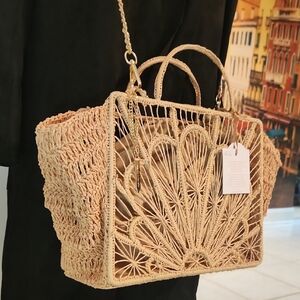 Stylish woven tote with intricate design. Perfect for any occasion. Adds elegance to your look.
