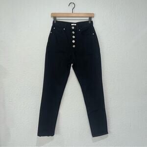 WeWoreWhat Danielle Jeans Crystal Button Up Straight Leg Black