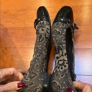 AGL Black Patent and Tan Patterned Loafers