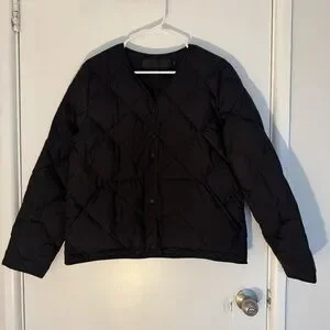 $425 Jenni Kayne Park Down Jacket Quilted Snap Button Classic Black XS