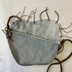 Newport News Suede Crossbody Bag Blue Brown Fringe Boho Cowgirl Western