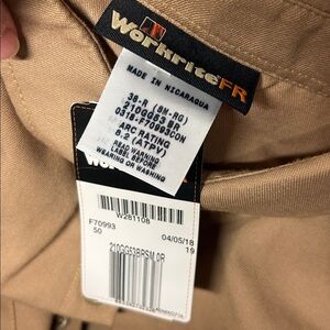 Men's size 38R small work right FR flame resistant tan button shirt new with tax