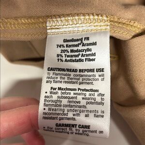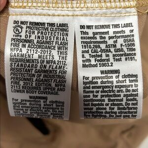 New with tags size 38R small men’s work right fire resistant button up long sleeve work shirt cat two disc garment meets or exceeds the performance requirements of OSHA 1910.269 title eight