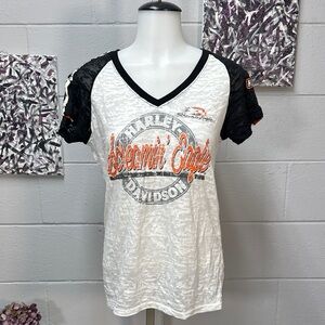 Harley-Davidson Women's White and Black V-Neck Tee