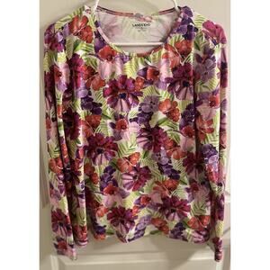 Womens Floral LANDS END Stretchy Long Sleeve Top Shirt SIZE Large 14 - 16 purple
