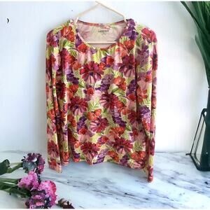 This beautiful and comfortable women's long sleeve top from Lands' End is a must-have addition to your wardrobe. The top features a lovely multicolor floral pattern, making it perfect to pair with a variety of bottoms. It is made from a stretchy material, ensuring a comfortable fit throughout the day. Very good condition and comes from a smoke free home!