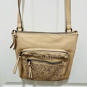 Sonoma Good For Life Cross Body Beige Purse With Zipper Closure With 7 Pockets