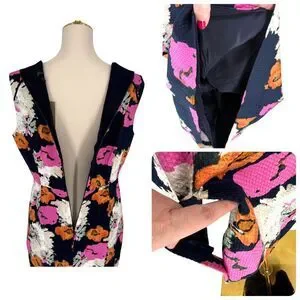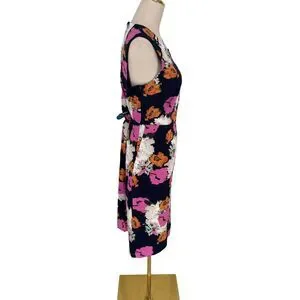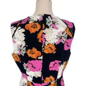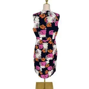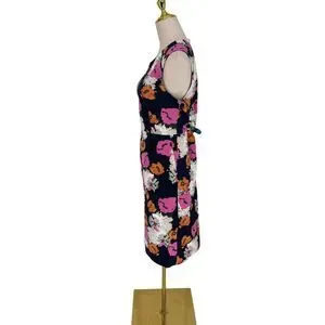 J.Crew Floral Sheath Dress 12 Portfolio Navy Pink Petunia Matelasse Sleeveless