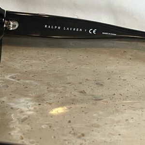 Stylish Ralph Lauren sunglasses with a glossy black frame. Perfect for a modern look.
