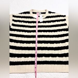 J. Crew cashmere cable-knit crewneck sweater in black and ivory stripe, size L
