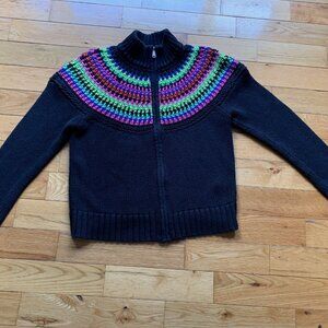 Ralph Lauren RL Active Black Rainbow Stripe Knit Sweater Zip Front Women’s XL