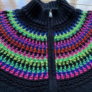 Color: Black base with rainbow multicolour knit stripes