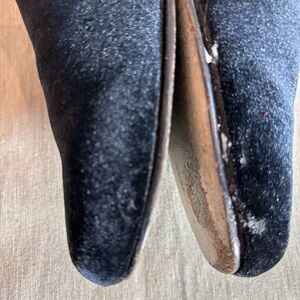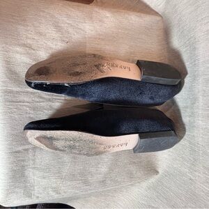 LAUREN RALPH LAUREN Sz 10 Black Velvet Squarish Toe Gold Embroidered Loafers. Note the place where the shoes need further glueing. Sophisticated and chic.