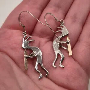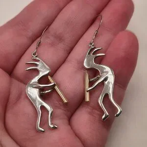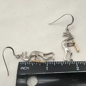 Vintage Sterling Silver Kokopelli Earrings With Gold-tone Flute
